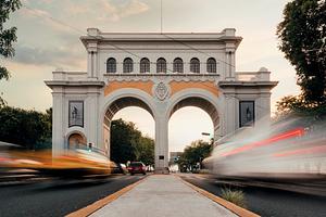 Admire the sleek beauty of Arcos Vallarta, a contemporary architectural marvel that graces the Guadalajara skyline. Guadalajara, Jalisco. 2018